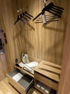 入り口にはクローゼットのスペースがあります。使い捨てスリッパは一般的なタイプです。