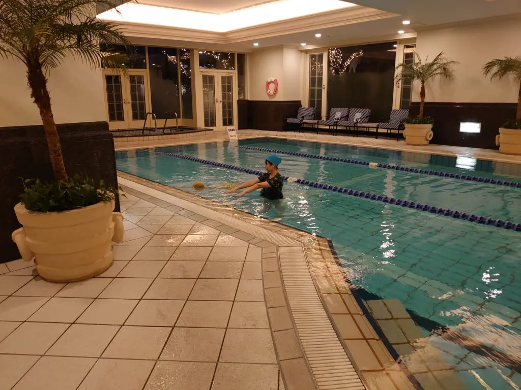 お部屋で少しゆっくりしたあと、室内プールで遊ぶことにしました。子連れの場合、ホテルに室内プールがあると本当に重宝します!もちろん宿泊者は無料で利用できます。
