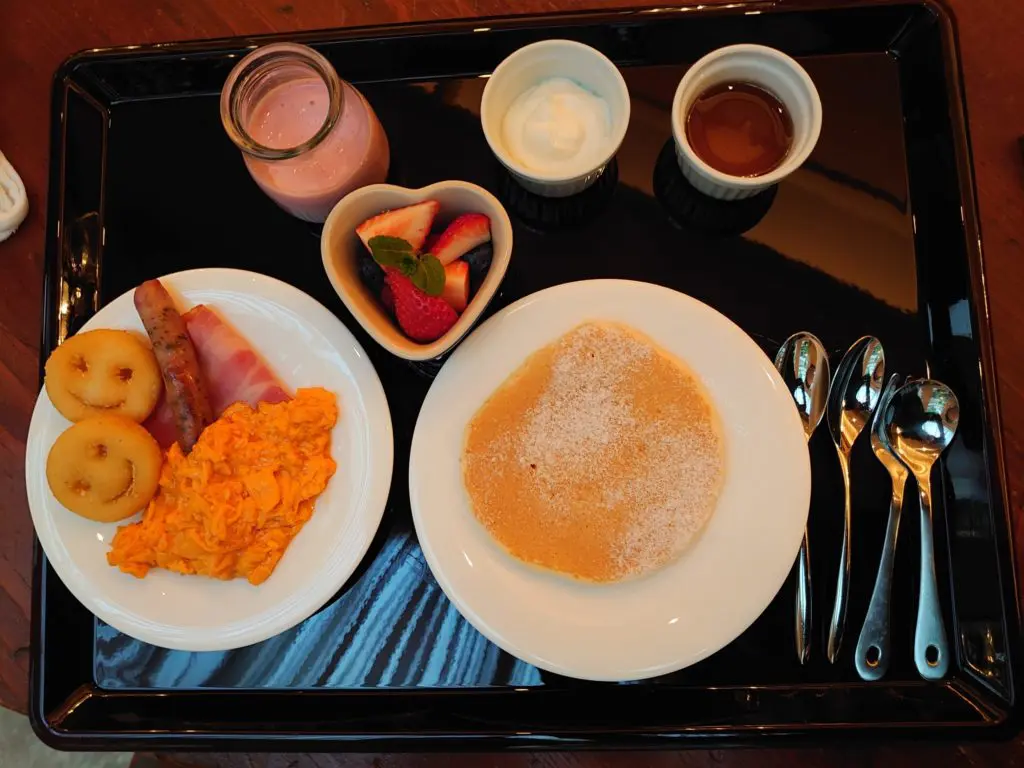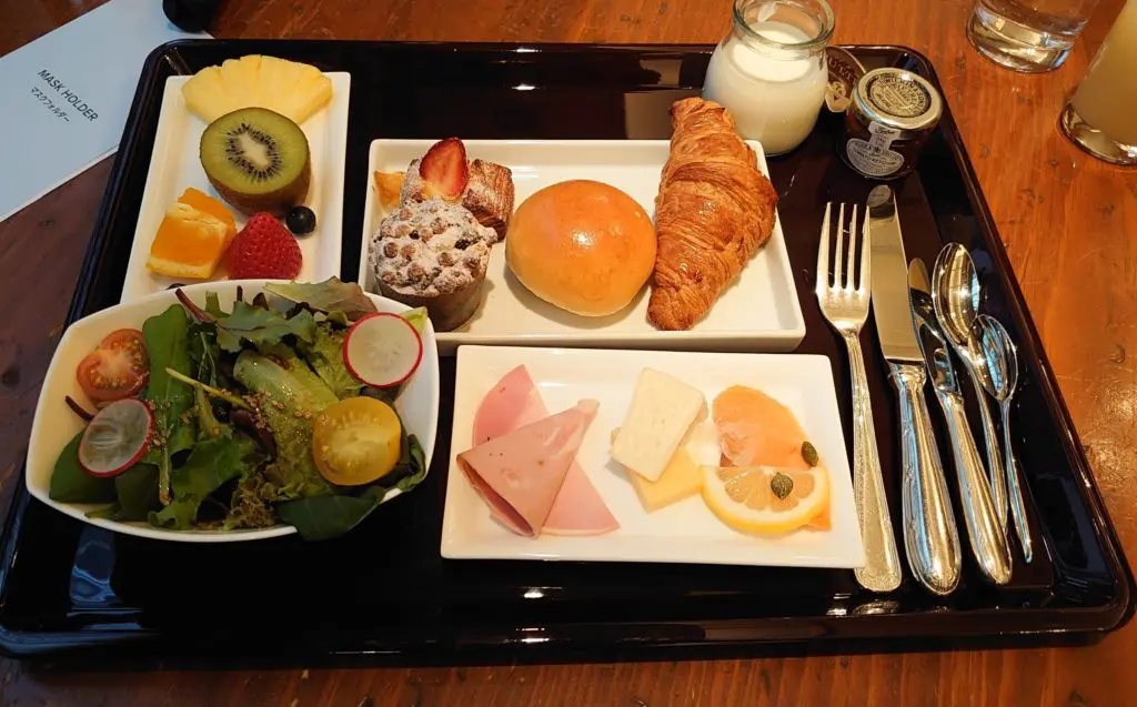 コロナということもあってかビュッフェスタイルではなくセットメニューでの提供でした。和食か朝食を選べるので、私は洋食にしました。