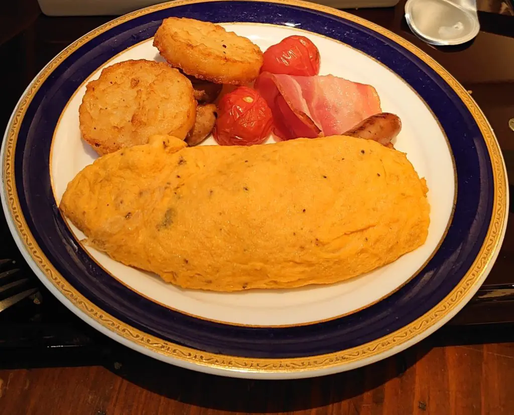 窓際の席に案内されたのですが、外からの風が入ってきているのか、室内とは思えないくらい寒いです(;´Д`)しかも待てども待てども料理がサーブされず。結局、待っている間に凍え死にそうだったため部屋まで上着を取りに行って、コートを着たまま食事をしました。(ほかにも上着を着て食事をしている人が何組かいたにも関わらず、改善しないのかな…?)一番最初にサーブしてほしかった子ども用のセットは、大人の食事が進み始めてもなかなか来ず、30分近く待ってやっとテーブルに運ばれました。温かいはずの料理は冷めてしまい(レストランが寒かったせいもあるかもです)、味気ない食事となりました。いつもならホテルの朝食で一番楽しみにしているオムレツはトリュフ入りでしたが、ほとんど香りは感じられず、残念ながら期待外れでした。
