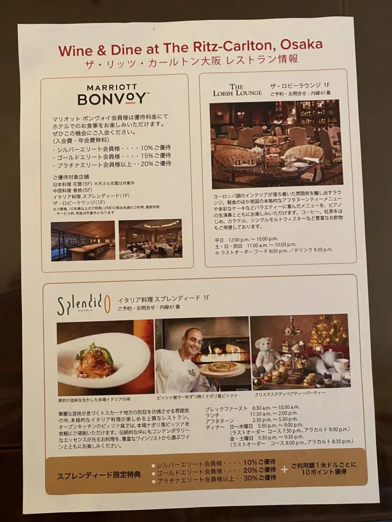 また、シルバー以上の会員は各レストランで割引を受けることができます。私の場合、ゴールド会員なので15%の優待となります。(ただし、現在はコロナのためレストランの営業が通常とは異なる場合がありますのでご注意を。事前に公式サイトでチェックされると良いかと思います)