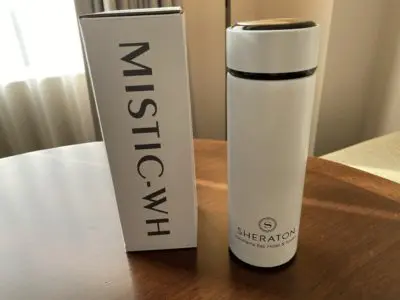 バースデープレゼントとしてさらにシェラトンホテルオリジナルのステンレスボトルをいただきました。落ち着いた色と主張しすぎないロゴで普段使いできそうです。