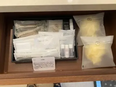 化粧水・乳液・メイク落としのミニセットはほかのお部屋では見かけた覚えがないので、もしかしたらクラブフロアのお部屋にのみ置いてあるのかなという気がします。