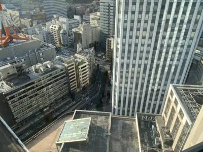 横浜のビル群を見下ろす、お部屋からの眺め。