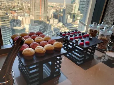 さっそくクラブラウンジに立ち寄ってほっと一息。ちなみにこの日のティータイム時に追加されたお菓子はチョコトリュフ2種、マフィン2種(いちご、プレーン)でした。通常のデイタイム時もキスチョコや美味しいクッキー、ナッツ類などが常備してあり満足度高いです。